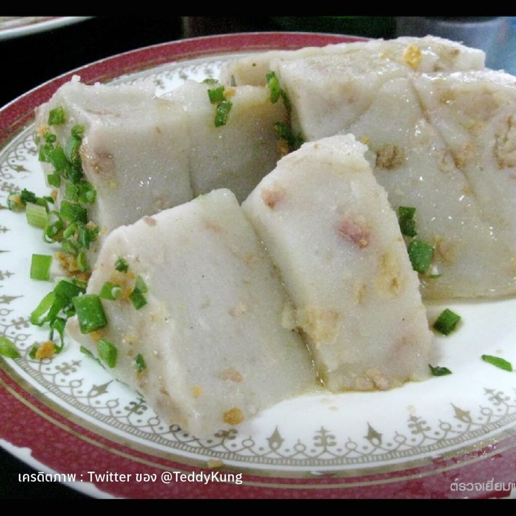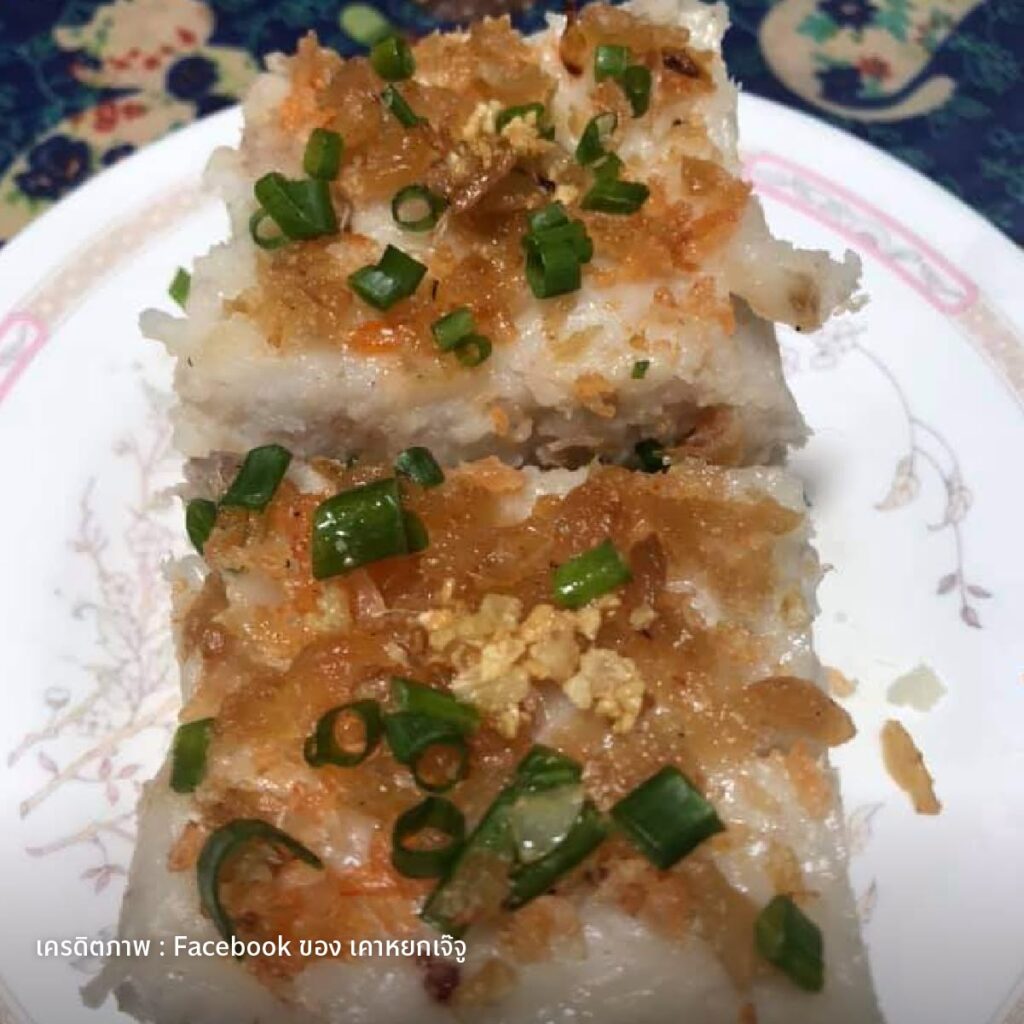 ถึงชื่อเมนูจะบอกว่าเป็นขนม แต่ก็เป็นขนมที่มีส่วนผสมของคาวอย่าง กุ้งแห้งสับ กุนเชียง หอมแดง และกระเทียม พร้อมกันนี้ยังมีการเสิร์ฟให้ทานพร้อมซอสพริก ซึ่งต้องบอกเลยว่า สร้างความประหลาดใจให้กับหลายคนเกี่ยวกับความเป็นขนมของมันมาก