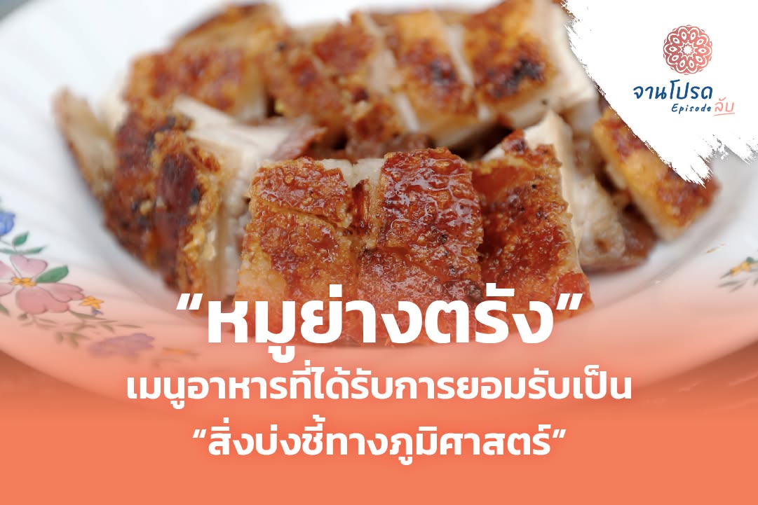 อย่างไรก็ดี จานที่เราจะนำมาเสนอในวันนี้ มีความโดดเด่นโด่งดังจนกระทั่งได้รับการขึ้นทะเบียนเป็น “สิ่งบ่งชี้ทางภูมิศาสตร์” เลยทีเดียว ซึ่งก็แสดงถึงความสำคัญว่า นึกถึงจังหวัดนี้ต้องนึกถึงเมนูนี้อย่างแน่นอน เมนูจานโปรดนั้น ก็คือ “หมูย่างเมืองตรัง”