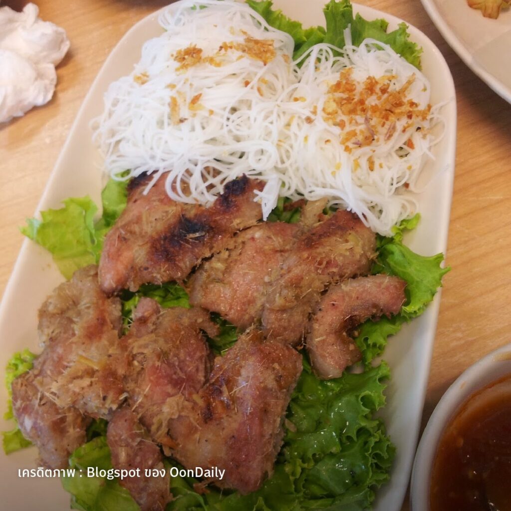 เมื่อมาถึงสระบุรี ก็มีเมนูหมี่พิเศษเช่นกัน เมนูนั้น คือ “เส้นหมี่หน้าหมู” หรือ บางคนรู้จักในชื่อ “บั่นหอย”