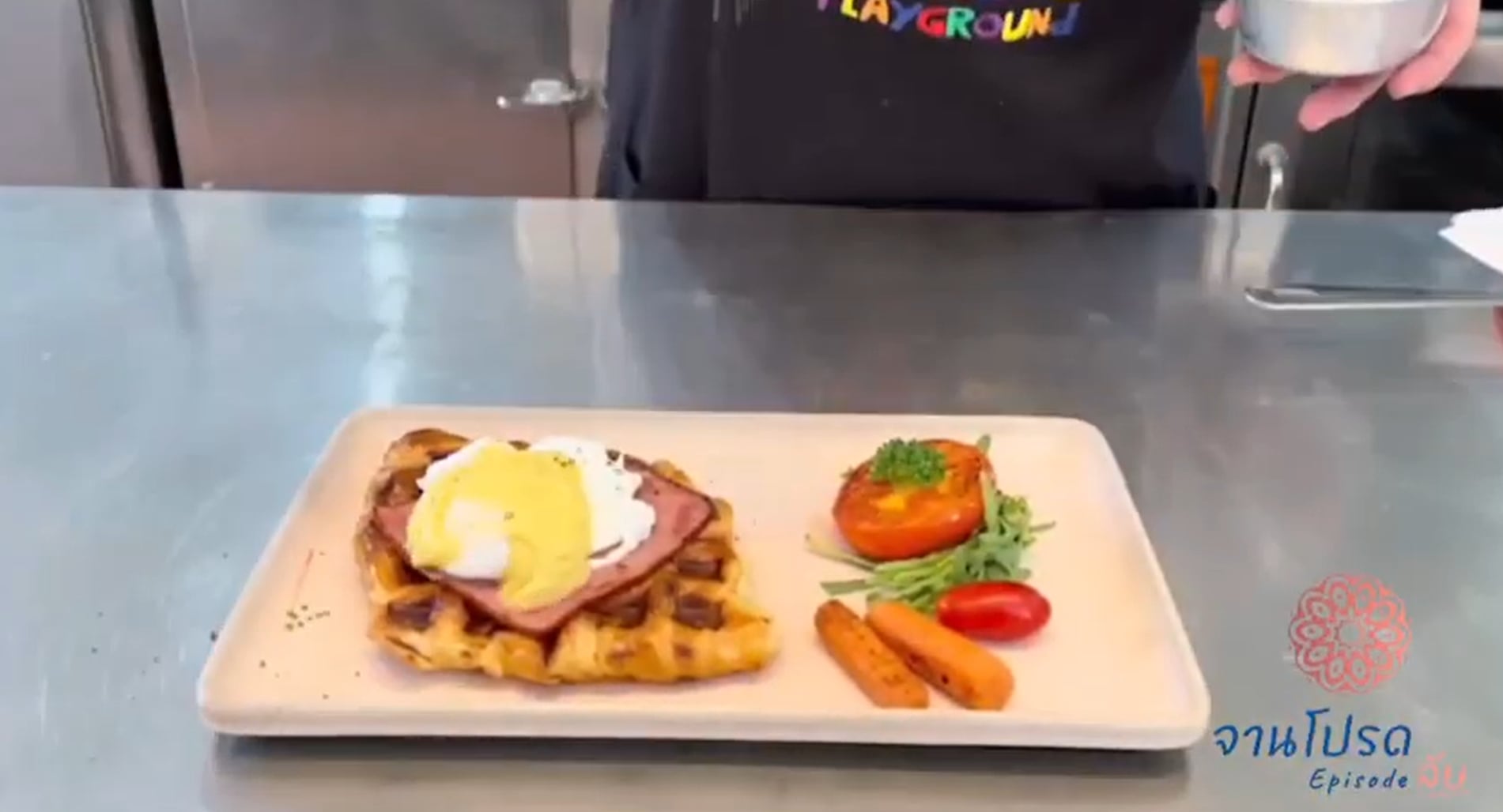 Baking Playground ขึ้นชื่อเรื่อง ครัวซอง และเครื่องดื่มที่หลากหลาย วันนี้ได้ มาลอง all day breakfast กับเมนู ครอฟเฟิล เบเนดิก (Croffle Benedict) ที่อร่อยอย่างลงตัวจากครอฟเฟิลหอมๆ ของเนยจากฝรั่งเศสเสริฟพร้อม พอร์ชเอ้ก ที่สุกกำลังดีมาพร้อมกับแฮม และครีมซอสสูตรพิเศษรสชาติกลมกล่อม