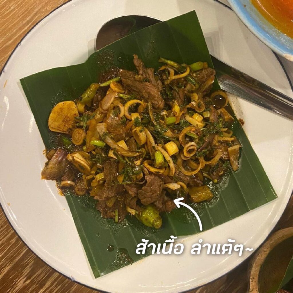 อาหารพื้นเมืองเหนือที่ลำแต้ๆ อันนี้คือหนึ่งในเมนูแนะนำของทางร้านเลยนะ เป็นชิ้นเนื้อแล่บางๆ คลุกเคล้ากับเครื่องเทศพริกลาบของทางเหนือ ถ้าใครชอบกินเนื้อดิบก็สามารถเลือกระดับความสุกได้นะ มีทั้งแบบสะดุ้ง แบบดิบ หรือแบบลวกสุก ขอบอกเลยว่าลำทุกแบบเลยเจ้า