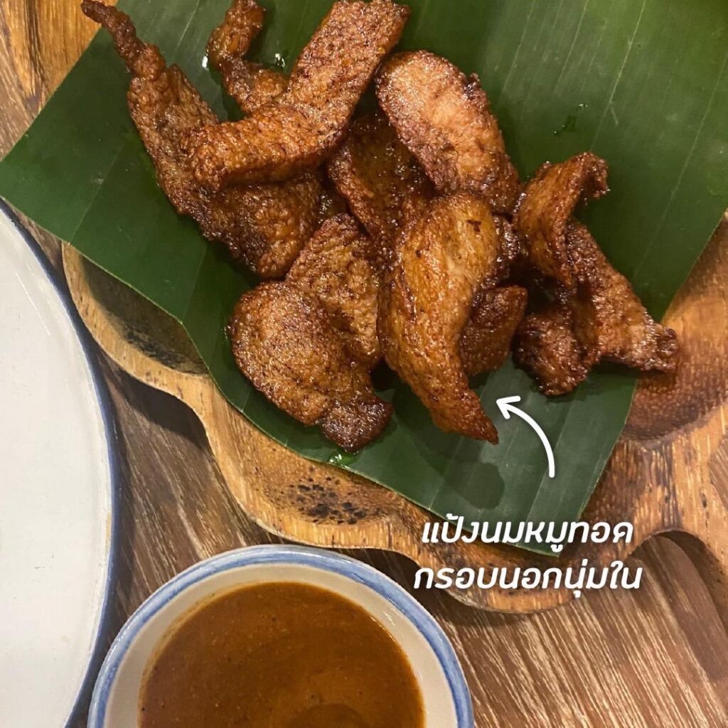 แป้งนม หรือที่คนภาคอื่นๆ เรียกว่าพวงนม เป็นพวงนมหมูชิ้นนุ่ม หมักจนได้รสชาติเข้มข้นเข้าที่แล้วเอาไปทอดกรอบนอกนุ่มใน กินกับน้ำจิ้มของทางร้านอร่อยมาก