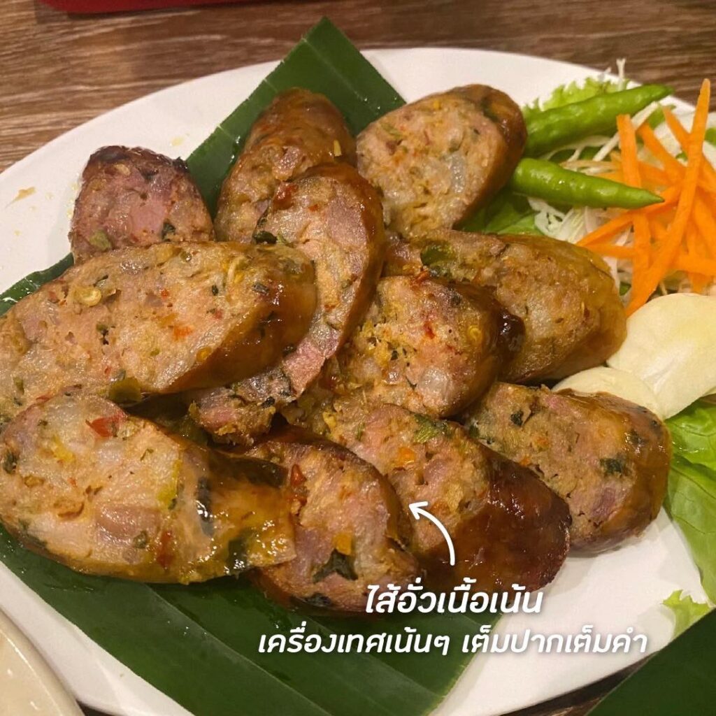 อาหารเหนือจานแรกของเราจะเป็นอะไรไปไม่ได้นอกจากไส้อั่ว ไส้อั่วสมุนไพรไส้แน่นๆ กัดเข้าไปได้รสชาติเข้มข้น หอมสมุนไพรและเครื่องเทศเต็มๆ คำ
