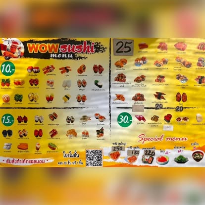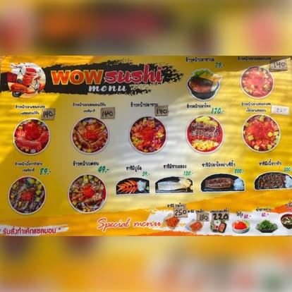 วันนี้พามาร้านว้าวซูชิย่านพหลโยธิน34 เปิดเมนูมาปุ๊ปก็ต้องร้องว้าวดอกที่หนึ่ง เพราะราคาไม่แพง มีราคาตั้งแต่ 10 15 25 30 บาท พร้อมอาหารจานเดียวอีกหลากหลายเมนูมีทั้งราคาหลักสิบ หลักร้อยให้เลือก
