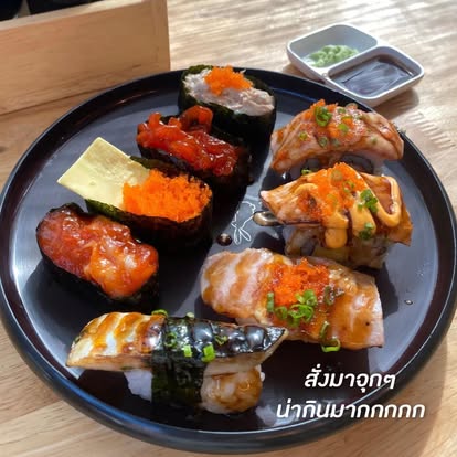 แอดก็สั่งไปชุดใหญ่ไฟกระพริบ อยากลองทุกอย่างโดยเฉพาะซูชิแซลมอนที่เขาว่ากันว่าหน้าทะลักอร่อยเต็มคำ พออาหารมาเสิร์ฟก็ต้องร้องว้าวรอบที่สอง เพราะชิ้นใหญ่มากกกกก แถมราดซอสแบบจุกๆ ใครสายฉ่ำชอบซอสเยิ้ม ๆ ต้องหลงรัก
