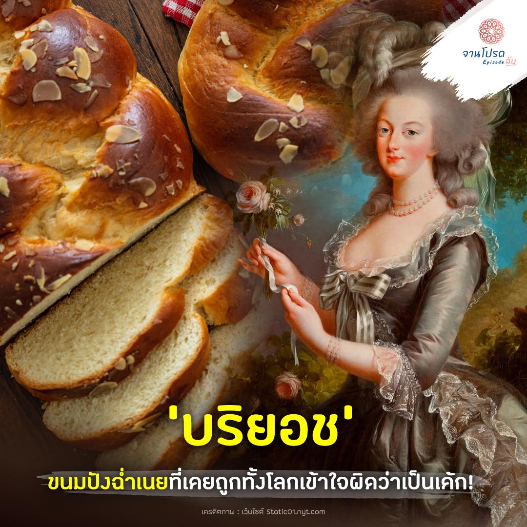 เชื่อว่าทุกคนส่วนใหญ่ที่เคยศึกษาประวัติศาสตร์หรืออ่านหนังสือความรู้ทั่วไปมาบ้างอาจจะเคยได้ยินประโยคเด็ดวลีดังที่ว่า “ไม่มีขนมปังก็กินเค้กแทนสิ” ที่กล่าวกันว่าเป็นคำพูดของพระนางมารี อองตัวแนตต์มาบ้าง แต่อันที่จริงแล้ว ประโยคต้นฉบับที่ว่า Qu’ils mangent de la brioche นั้น คำว่า Brioche มันไม่ได้หมายถึง “เค้ก” หากแต่หมายถึง “ขนมปัง” อีกประเภทต่างหาก.บริยอชเป็นขนมปังในประเภทที่เรียกกันว่า “เวียนนัวเซอรี” ซึ่งเป็นขนมปังที่มีเนย นม ไข่ เป็นส่วนประกอบต่างจากขนมปังทั่วไป ถ้านึกภาพไม่ออกให้นึกถึงขนมปังครัวซองค์ ซึ่งไม่ได้มีเนื้อสัมผัสแบบเค้กแต่อย่างใด.สำหรับที่มาของบริยอชนั้นว่ากันว่าชาวนอร์มันไวกิ้งเป็นคนนำเข้ามาในช่วงศตวรรษที่ 9 แล้วก็มีหลักฐานการมีอยู่ของชื่อบริยอชในเอกสารโบราณช่วงศตวรรษที่ 15 โดยรากศัพท์มาจากคำในภาษานอร์มันเก่าว่า “บรีเยอร์” (brier) ซึ่งแปลว่าการนวดแป้ง โดยวัตถุดิบที่ใช้ทำบริยอชก็คือเนยซึ่งเป็นวัตถุดิบที่มีชื่อเสียงมากของชาวนอร์มัน แรกเริ่มเดิมทีก็ไม่ได้ใช้เนยจำนวนมากหรือน้ำตาลในการทำ จนกระทั่งในรัชสมัยของพระเจ้าหลุยส์ที่ 14 ก็ได้มีการใส่เนยในบริยอชเข้าไปแบบจุก ๆ ทำให้ขนมปังบ้าน ๆ ของชาวนอร์มันกลายเป็นขนมปังสุดหรูของผู้มีอันจะกินในฝรั่งเศสไปโดยปริยาย.เมื่อบริยอชได้ชุบตัวกลายเป็นอาหารชั้นสูงแล้ว ราคาก็สูงตามไปด้วย จนถึงช่วงศตวรรษที่ 18 ซึ่งมีการขาดแคลนอาหารอย่างหนักพร้อม ๆ กับเศรษฐกิจที่ผันผวนดีดให้ราคาขนมปังธรรมดาสูงขึ้น ซึ่งแน่นอนว่ายิ่งทำให้บริยอชยิ่งกลายเป็นขนมปังที่คนทั่วไปเอื้อมไม่ถึง และเมื่อฌอง-ฌัค รูสโซเขียนหนังสือถึงประโยค “ไม่มีขนมปังก็กินบริยอชสิ” บริยอชจึงถูกนำมาใช้เป็นข้อหาในการให้ร้ายพระนางมารี อองตัวแนตต์ แต่ในปีรุสโซเขียนหนังสือนี้จริง ๆ คือปี 1765 โดยในขณะนั้นพระนางมารีย์ อองตัวแนตต์มีอายุเพียง 9 ปี และยังไม่เคยเหยียบแผ่นดินฝรั่งเศสมาก่อนเลย.แต่อะไรที่เป็นสาเหตุให้ผู้คนเข้าใจว่าบริยอชเป็นเค้ก? บางทีอาจจะเป็นในเรื่องของการแปลที่ใช้ประสบการณ์ร่วม เพราะคนนอกฝรั่งเศสอาจไม่ได้รู้จักบริยอช ในสมัยหลังจึงได้แปลประโยค “ไม่มีขนมปังก็กินบริยอชสิ” เป็น “ไม่มีขนมปังก็กินเค้กสิ” เพื่อให้ผู้อ่านเห็นภาพได้ชัดเจนมากขึ้น สำหรับในปัจจุบันนี้ ราคาของบริยอชก็ยังนับว่าสูงอยู่เมื่อเทียบกับราคาขนมปังชนิดอื่น เนื่องจากราคาวัตถุดิบอย่างเนย ซึ่งจะแพงมากหรือแพงน้อยก็ขึ้นอยู่กับเกรดของวัตถุดิบที่ใช้ในการทำบริยอชด้วย.#จานโปรด #ขนมฝรั่งเศส