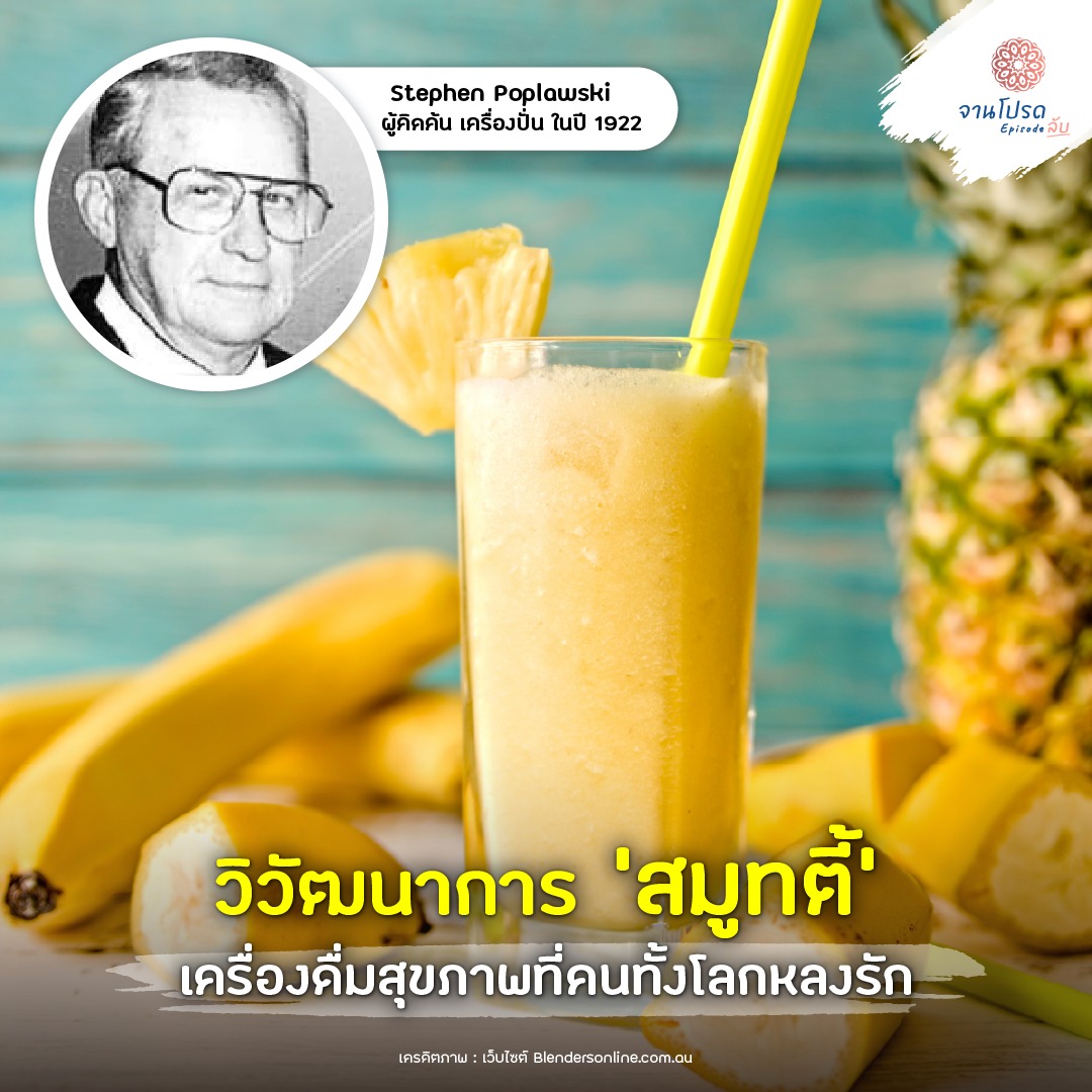 เครื่องปั่นถูกประดิษฐ์โดย Stephen Poplawski ในปี 1922 เขาได้ลองผสมโซดาลงไปในเครื่องดื่มเป็นครั้งแรก ภายหลังจึงมีการปรุงแต่งใส่กล้วยและสัปปะรดผสมลงไปกลายเป็น สมูทตี้กล้วย และสมูทตี้สัปปะรดเป็นครั้งแรกของโลกในราวปี 1940