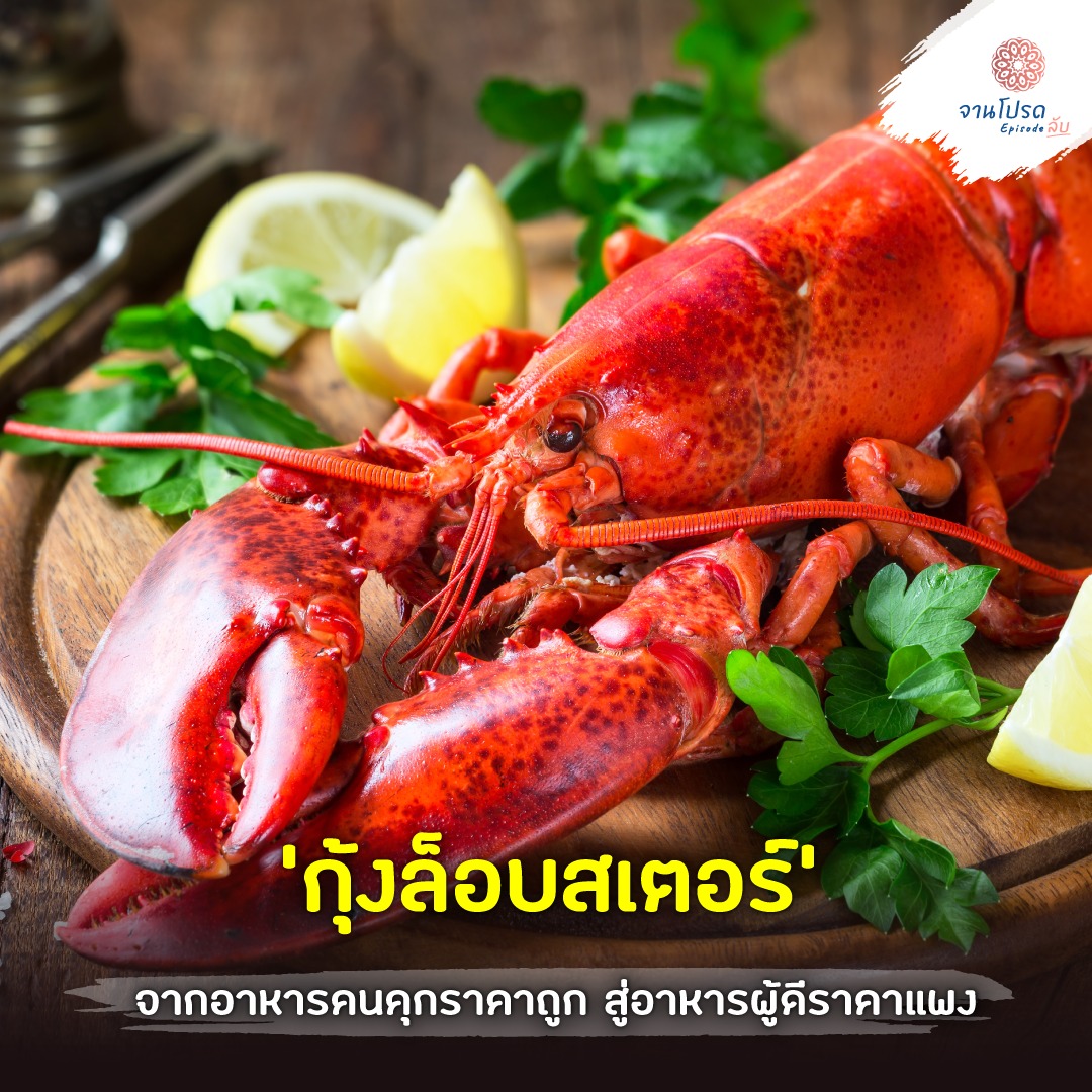 ถ้าพูดถึงอีกหนึ่งซีฟู้ดราคาแพงและถูกมองว่าเป็นอาหารหรู นอกจากหอยนางรมที่ได้เคยกล่าวไปแล้วก็ยังมี “กุ้งล็อบสเตอร์” กุ้งไซส์บิ๊ก และเป็นสัตว์ในกลุ่มครัสเตเชียนที่มีอายุขัยยืนยาวที่สุด(หรืออาจจะน้อยที่สุดเพราะโดยจับกิน) แต่กว่าที่กุ้งล็อบสเตอร์ จะมามามีราคาแพงหูฉี่ขนาดนี้ได้ นั้นมันก็มีประวัติที่คล้าย ๆ กันกับหอยนางรม.“แมลงสาบแห่งท้องทะเล” หรือ “เนื้อไก่ของผู้ยากไร้” ล้วนแต่เป็นชื่อที่ถูกนำมาใช้เรียกขานเจ้ากุ้งยักษ์นี้ โดยในอาณานิคมอเมริกาช่วงศตวรรษที่ 18 นับว่าเป็นยุคทองของกุ้งล็อบสเตอร์ที่ขยายพันธ์ุมากมายรายรอบชายฝั่งรัฐแมสซาซูเซสต์.โดยจำนวนที่มากมายของมันทำให้มันถูกใช้ทำปุ๋ยเพื่อการเกษตร อีกทั้งยังถูกใช้เพื่อเป็นอาหารของนักโทษและทาส โดยมองว่ามันเป็นอาหารราคาถูกที่กินได้ และลดค่าใช้จ่ายในการเลี้ยงดูคนเหล่านี้ อีกทั้งมันยังไม่ได้เป็นอาหารที่เลิศรสอะไรขนาดนั้นสำหรับคนในศตวรรษที่ 18.แล้วล็อบสเตอร์ก้าวกระโดดมาเป็นอาหารหรูราคาแพงได้อย่างไรกัน? อันที่จริงสาเหตุที่คนในศตวรรษที่ 18 บอกว่าล็อบเสตอร์ไม่อร่อยนั้นเป็นเพราะกรรมวิธีการปรุงที่ผิด เพราะองค์ความรู้ในสมัยนั้นได้นำกุ้งล็อบเสตอร์มาประกอบอาหารด้วยวิธีเดียวกันกับการประกอบอาหารด้วยเนื้อสัตว์อื่น ๆ คือ ต้องตายก่อนถึงจะนำมาทำอาหาร.ทว่าสำหรับล็อบสเตอร์นั้น เมื่อมันตายมันจะปล่อยเอนไซม์ออกมา ทำให้กุ้งล็อบสเตอร์มันไม่อร่อย โดยวิธีที่จะกินให้อร่อยคือต้องต้มล็อบสเตอร์ทั้งเป็น ซึ่งผู้ริเริ่มทำให้กุ้งล็อบสเตอร์กลายเป็นของหรูของอร่อยก็คือพนักงานบนรถไฟ.เมื่อคนอเมริกันมีรถไฟใช้ เวลาที่ต้องเดินทางนาน ๆ ข้ามรัฐ บนรถไฟก็จะมีการเสิร์ฟอาหารให้กับผู้โดยสาร ทำให้ความนิยมของกุ้งล็อบสเตอร์ก็เพิ่มขึ้นมา พร้อม ๆ กับราคาที่สูงขึ้นจนกลายเป็นอาหารหรูไปโดยปริยาย ซึ่งในช่วงสงครามโลกครั้งที่สองเอง ล็อบสเตอร์ก็ถูกใช้เป็นเนื้อกระป๋องสำหรับทหารด้วย.การนำกุ้งล็อบสเตอร์มาประกอบอาหารมีการพัฒนากันอย่างต่อเนื่องเพื่อวิธีทำให้ล็อบสเตอร์เป็นเมนูชั้นยอด แต่ในขณะเดียวกันความต้องการซื้อล็อบสเตอร์ก็มากขึ้นตาม ในท้ายที่สุดแล้วจึงได้แต่หาหนทางช่วยเหลือเพื่อไม่ให้ล็อบสเตอร์สูญพันธ์ไปจนเป็นตราบาปอีกหนึ่งเรื่องของวัฒนธรรมอาหาร.