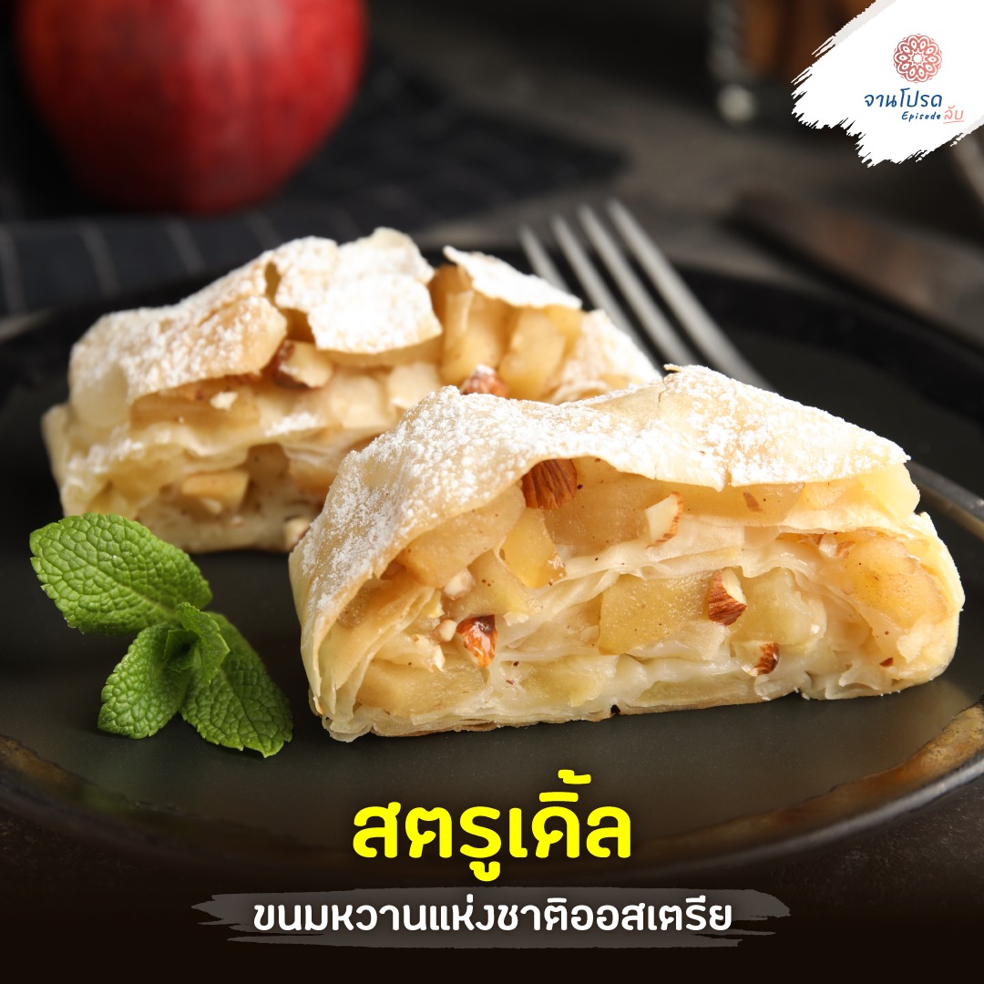 สตรูเดิ้ล ขนมดั้งเดิมของออสเตรีย เป็นแป้งพายพับนำไปอบให้เป็นชั้น มีหลายไส้แต่ที่นิยมส่วนใหญ่คือไส้แอปเปิ้ล ทานคู่กับวิปครีม ไอศกรีมเย็นๆ อร่อยชื่นใจ เรียกได้ว่าใครไปออสเตรียต้องไปลอง