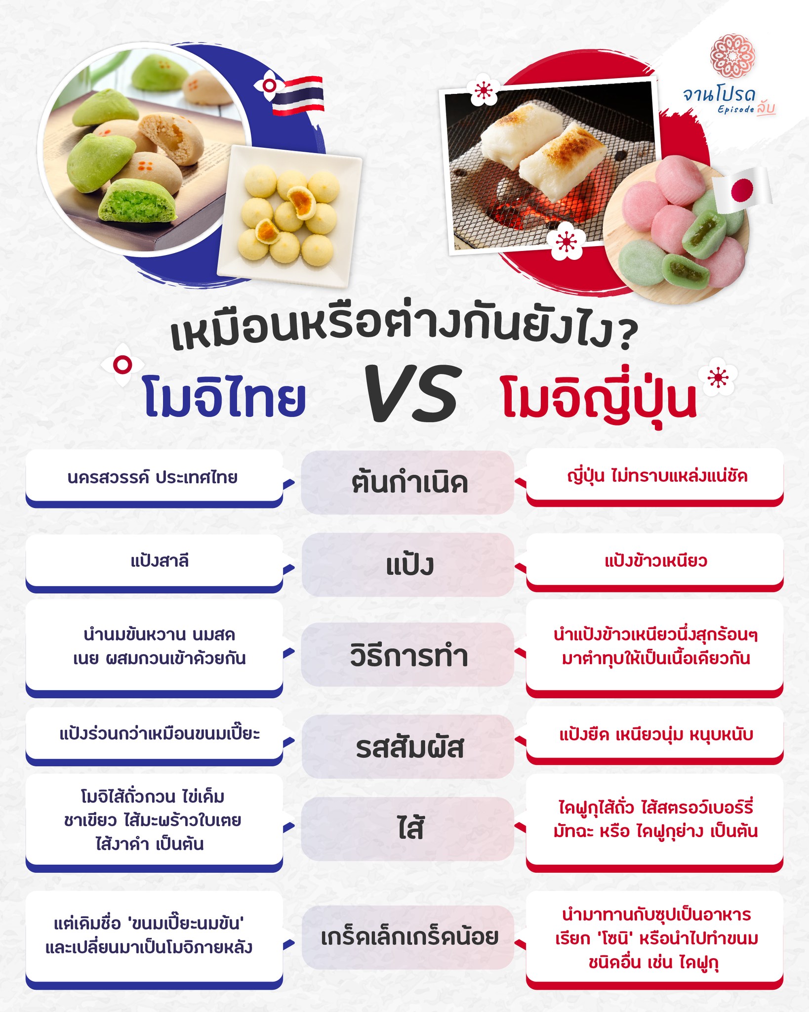 ด้วยเหตุนี้ จึงเป็นที่มาของบทความในวันนี้ว่าจริงๆ แล้วโมจิไทยและโมจิญี่ปุ่น แตกต่างกันยังไงกันแน่ แต่ที่แน่ ๆ ความอร่อยคงฟาดฟันสูสีไม่แพ้กันแน่นอน