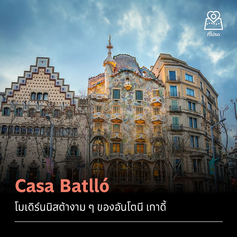 ถ้าจะพูดถึงสถาปัตยกรรมในบาร์เซโลน่าแล้วล่ะก็ จะไม่พูดถึงชื่อของเกาดี้ (Antoni Gaudí) ก็คงจะไม่ได้ เราอาจจะจดจำผลงานของเกาดี้จากซากราดา ฟามิเลีย (Sagrada Família) มหาวิหารที่ตอนนี้ก็ยังสร้างไม่เสร็จ แต่นอกเหนือจากผลงานชิ้นนั้น เกาดี้ยังมีผลงานชิ้นเอกอีกหนึ่งชิ้นที่ดูสวยสะดุด และสะท้อนถึงภาพลักษณ์ความรุ่งเรืองทางวัฒนธรรมของเมืองบาร์เซโลน่าได้เป็นอย่างดีอย่างผลงาน “คาซา บัตโย” (Casa Batlló) บ้านสุดสวยในย่านอิเลีย เด ลา ดิสกอร์เดีย ซึ่งเป็นแนวตึกแถวที่รวมผลงานสถาปัตยกรรมสมัยใหม่ชิ้นเอกของสถาปนิกชื่อดังหลายท่านของสเปนเอาไว้ในที่เดียวกัน