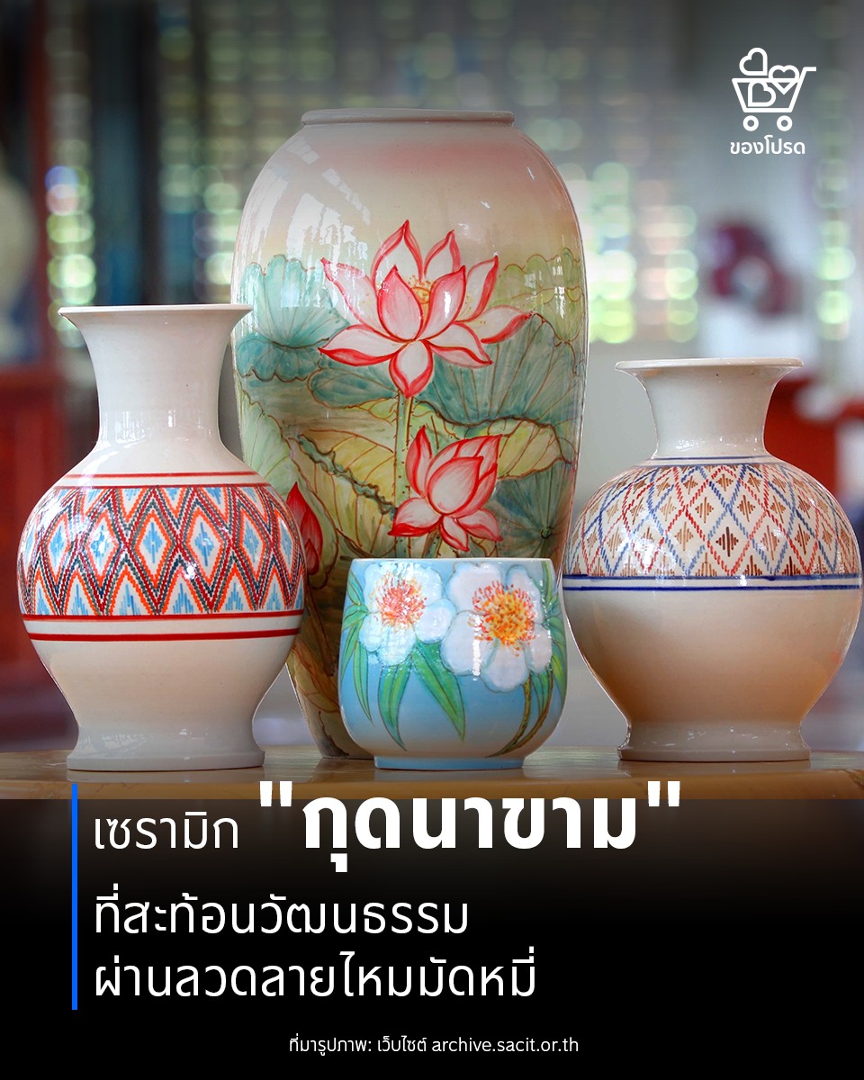 เซรามิกกุดนาขาม ไม่เพียงแต่เป็นงานฝีมือที่งดงาม แต่ยังเป็นสัญลักษณ์ของการอนุรักษ์และการสืบทอดวัฒนธรรมท้องถิ่น การนำลวดลายไหมมัดหมี่มาประยุกต์ใช้บนเซรามิกนั้นไม่เพียงเป็นการสร้างสรรค์งานศิลปะใหม่ แต่ยังเป็นการเชื่อมโยงระหว่างอดีตและปัจจุบัน สื่อถึงความเคารพในภูมิปัญญาชาวบ้านและความภาคภูมิใจในวัฒนธรรมอีสาน