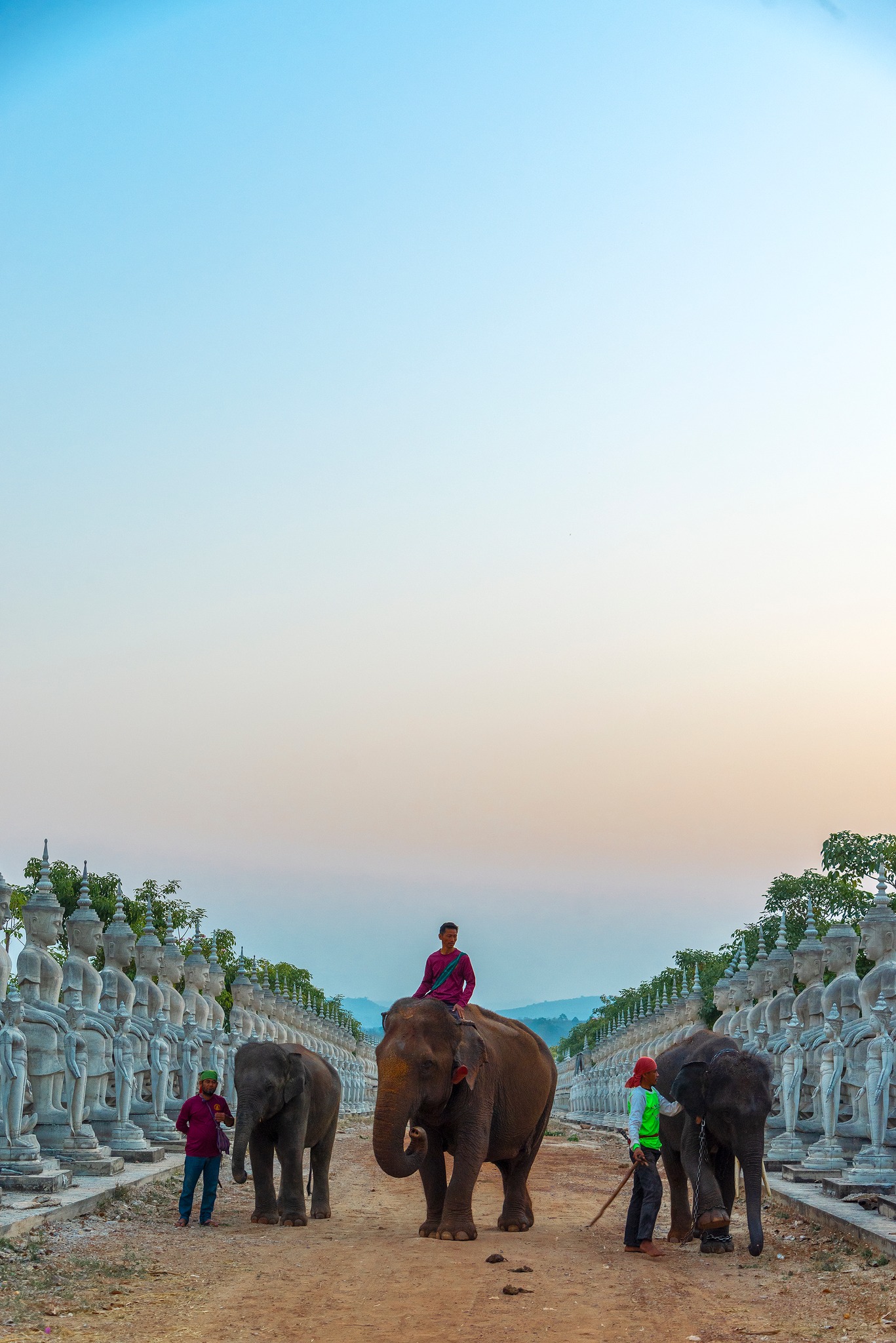 ด้วยทางเดินระยะทางเกือบ 100 เมตร ตลอดเส้นทางจะมีพระพุทธรูป ทั้ง 2 ข้างทาง การนั่งช้างเพื่อชมพระพุทธรูป จึงเป็นสิ้่งที่นำสนใจทีเดียว