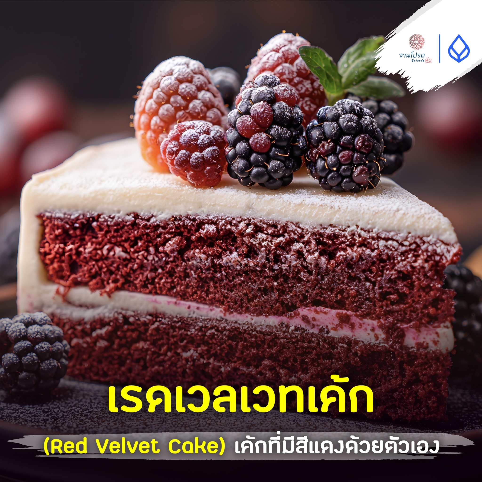 เรดเวลเวทเค้ก (Red Velvet Cake) เป็นของหวานที่มีสีสันและรสชาติเป็นเอกลักษณ์ โดดเด่นด้วยสีแดงฉ่ำและครีมชีสฟรอสติ้งสีขาวนุ่มฟู