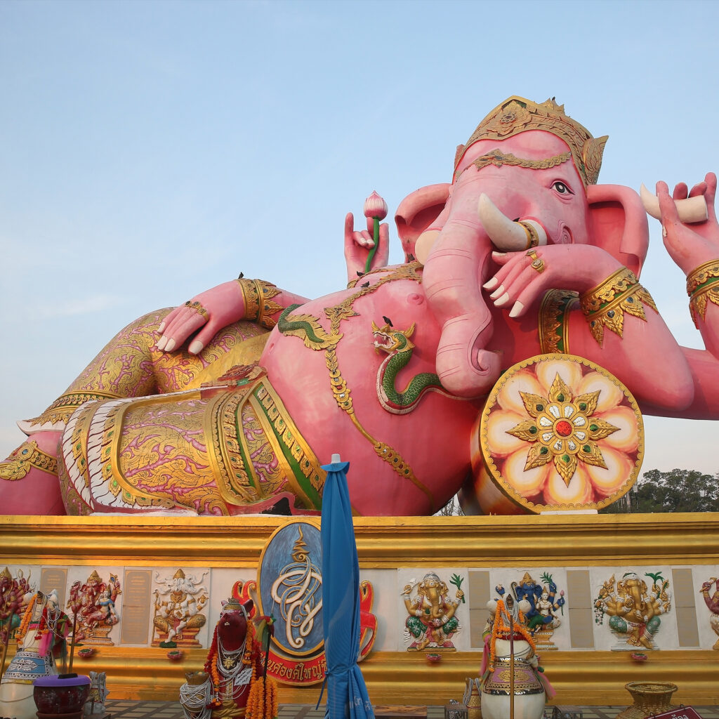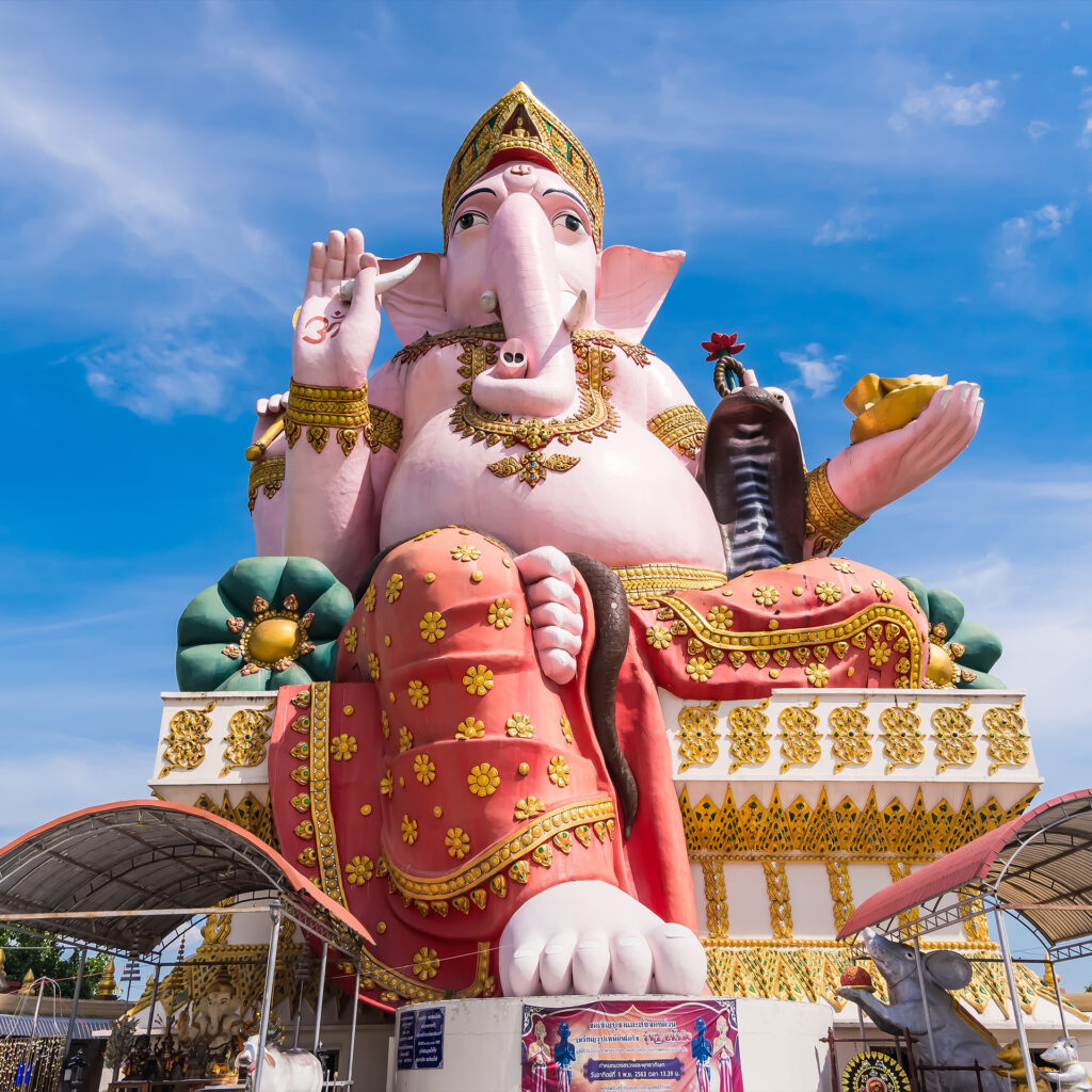 ถ้้าจะพูดถึงเหล่าเทพฮินดูที่คนไทยชอบมู นอกจากการมูขอแฟนกับพระแม่ลักษมีแล้ว ก็ยังมีพระพรหมบ้าง พระตรีมูรติ(ที่เป็นสทาศิวะ) บ้าง โดยอีกหนึ่งเทพที่ตามหลักของฮินดูจะต้องบูชาก่อนผู้อื่นอย่าง “พระพิฆเณศ” โดยหนึ่งในสถานที่ที่เกี่ยวข้องกับพระพิฆเนศที่โด่งดัง จะไม่พูดถึงเมืองแปดริ้ว หรือจังหวัดก็คงจะไม่ได้ ที่ซึ่งมีพระพิฆเนศองค์ใหญ่ถึง 3 องค์ให้ได้แวะไปสักการะกัน