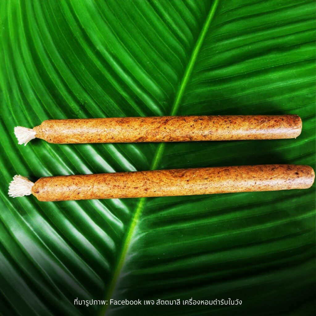 ที่เคยกล่าวถึงเทียนหอมแท่งเรียวยาวที่ใช้สำหรับอบร่ำห้อง อบผ้า และแพรพรรณของเจ้านายฝ่ายใน