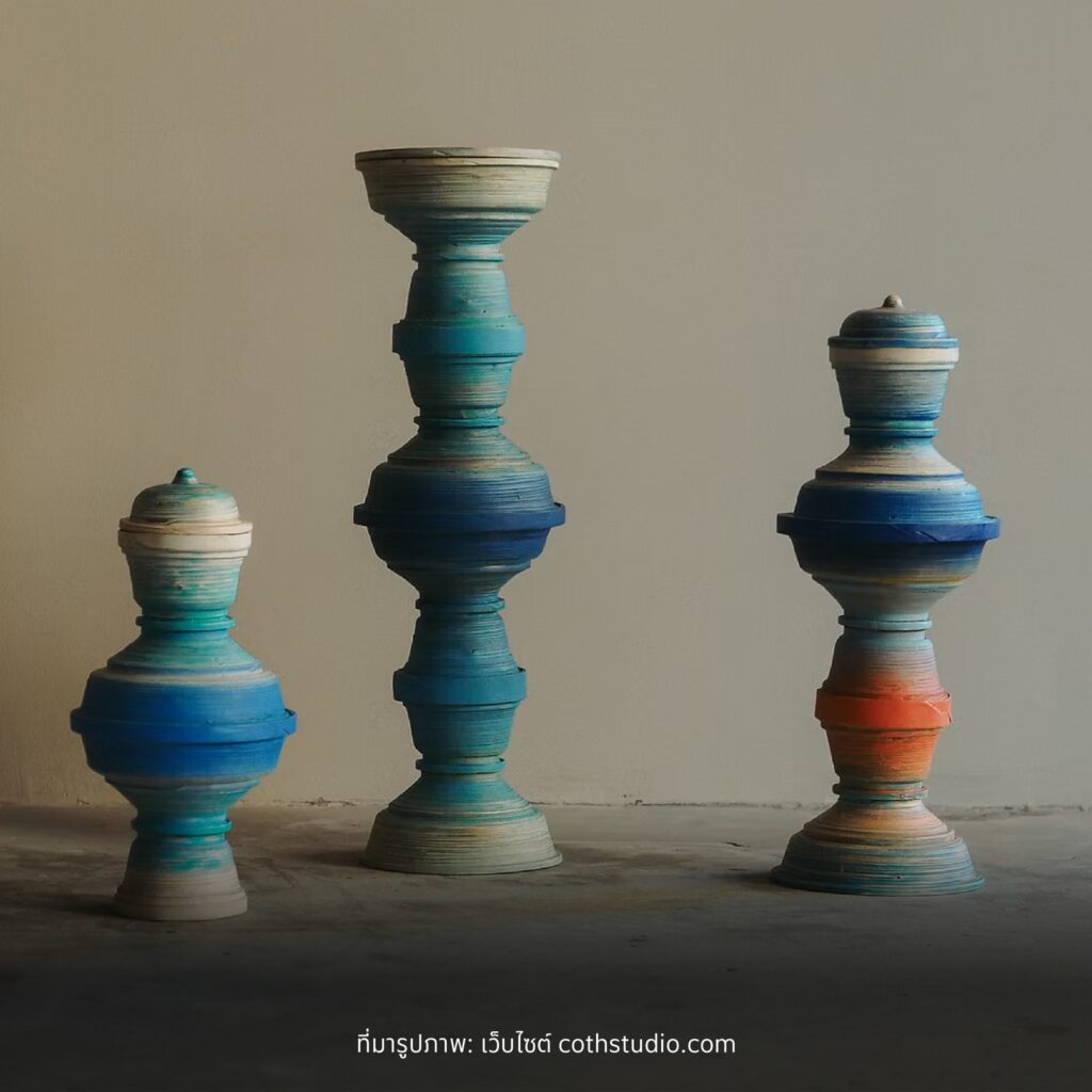 ผลงานของ COTH Studio มีความหลากหลาย ครอบคลุมหลายมิติ ตั้งแต่งานออกแบบที่ใช้เทคนิคหัตถกรรมดั้งเดิม ไปจนถึงการจัดแสดงที่ผสมผสานศิลปะกับเทคโนโลยี