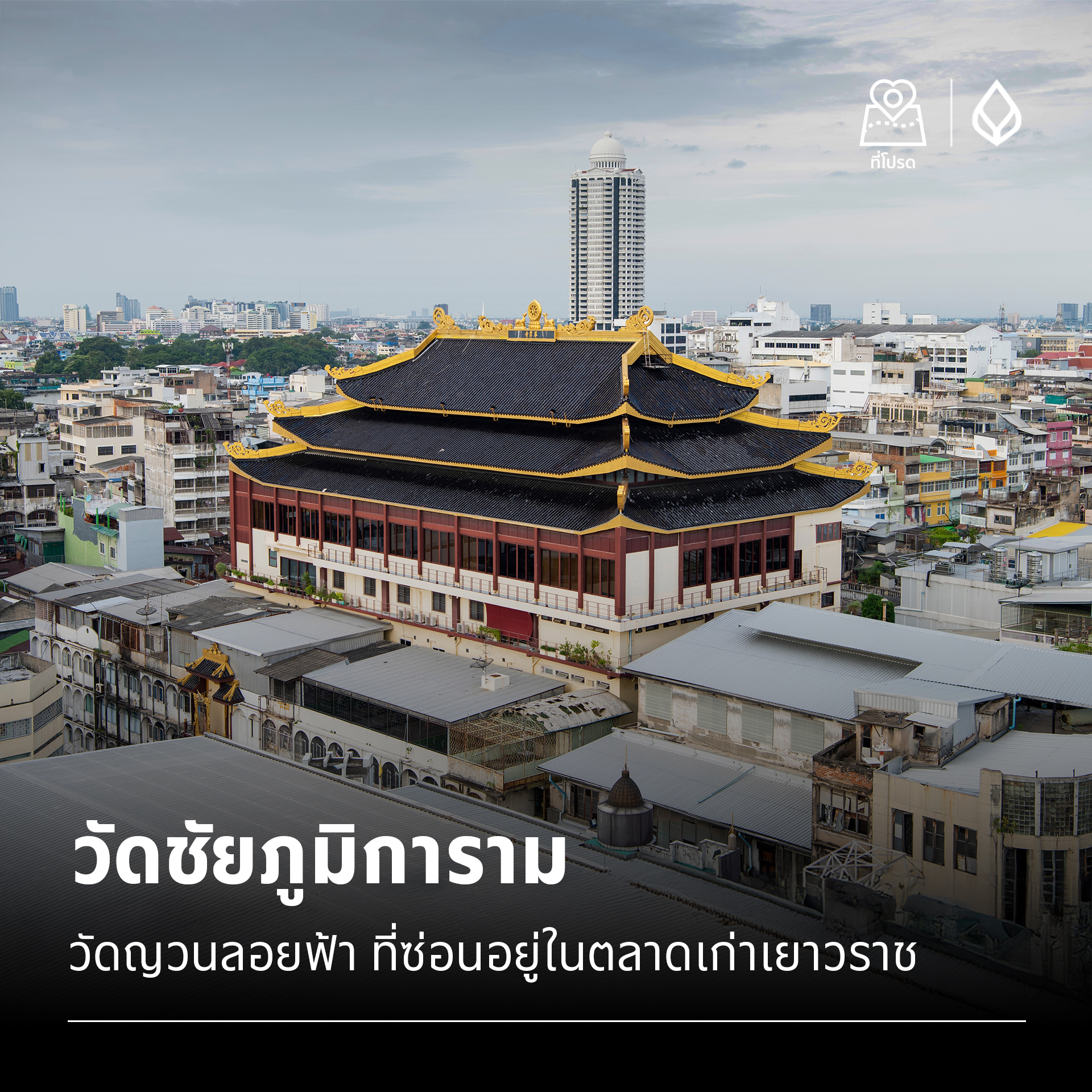 “วัดชัยภูมิการาม” หรือ “ตี๊ห ง่าน ตื่อ” หรือ “วัดญวนตลาดเก่า” วัดศาสนาสถานในศาสนาพุทธอันนัมนิกายที่ตั้งตระหง่านอยู่บนชั้นบนสุดของตึกที่ซึ่งเป็นจุดขายในฐานะของอุโบสถลอยฟ้าที่เห็นวิวเยาวราชได้แบบที่เรียกว่ารอบทิศ แต่ถึงจะฟังดูทันสมัย วัดนี้ก็เป็นวัดที่กล่าวกันว่าตั้งขึ้นมาโดยกลุ่มชาวญวนในไทย ตั้งแต่สมัยรัชกาลที่ 5 แล้ว