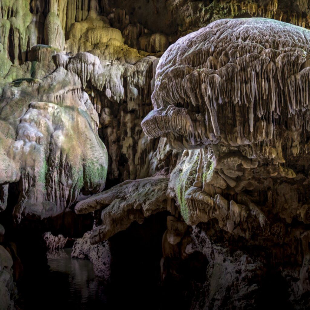 ไฮไลท์เด็ดของถ้ำเสาหินก็อยู่ในชื่อของถ้ำนั่นแหละ โดยเสาหินที่ถ้ำเสาหินนี้เป็นเสาหินปูนขนาดความสูงราว 62.5 เมตร เจ้าของสถิติเสาหินธรรมชาติที่สูงที่สุดในโลก ซึ่งสูงกว่าเจ้าของสถิติเดิมที่จีนเกือบเท่าตัวเลยทีเดียว โดยเสาหินนี้เกิดจากกระบวนการทางธรรมชาติที่ใช้เวลานานนับล้านปี อีกทั้งในถ้ำเสาหินก็ยังคงมีปรากฏการณ์หินงอกหินย้อยอยู่อีกมากมายหลายจุด ซึ่งเสาหินนี้เกิดจากหินงอกและหินย้อยที่ใช้เกิดขึ้นมาแล้วใช้เวลายาวนานกระทั่งมาบรรจบกันเป็นเสาหินเสาเดียว