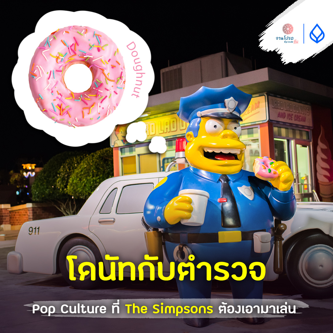 จึงกลายเป็น meme ทางวัฒนธรรมที่แข็งแรง รายการทีวีและการ์ตูนยุค 1950s–1970s มักวาดภาพตำรวจนั่งพักกินโดนัทกับกาแฟ เช่น The Simpsons (เริ่มออกอากาศปี 1989) ที่มี “Chief Wiggum” ตำรวจร่างท้วมปรากฏพร้อมกล่องโดนัทเสมอ นอกจากนี้ยังมีหนังและซีรีส์อย่าง Twin Peaks(1990) ที่มีฉากตำรวจล้อมโต๊ะเต็มไปด้วยโดนัท หรือ Zootopia (2016) ที่ตำรวจสัตว์ซื้อโดนัทมากิน