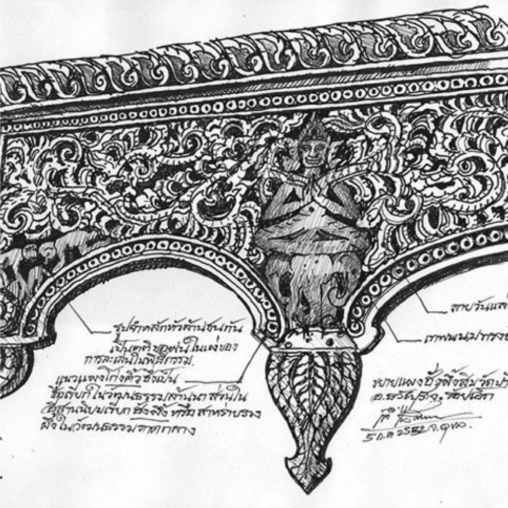 ลวดลายในศาสนาคารของอีสานและลุ่มน้ำโขง เป็นบันทึกทางวัฒนธรรมของมนุษย์ ที่บอกเล่าการผสมผสานระหว่าง ศาสนาผีและศาสนาพุทธ ผ่านลายเส้น รูปทรง และสัญลักษณ์ที่ยังคงมีชีวิตอยู่ในงานช่างของภูมิภาคนี้มาจนถึงปัจจุบัน