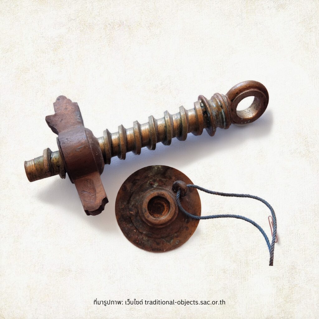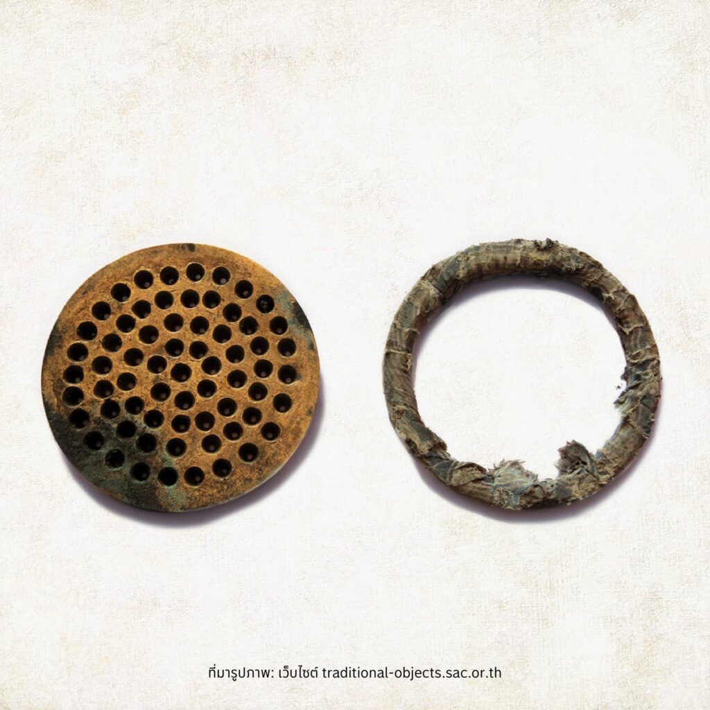 เครื่องมือพื้นบ้านชิ้นนี้ทำหน้าที่แสนเรียบง่ายแต่ต้องใช้ทั้งแรงและฝีมือ ด้วยการอัดแป้งผ่านกระบอกให้ไหลออกมาเป็นเส้นผ่านรูเล็ก ๆ ด้านล่าง กลายเป็นขนมจีนเส้นสวย ๆ ที่เราคุ้นเคย