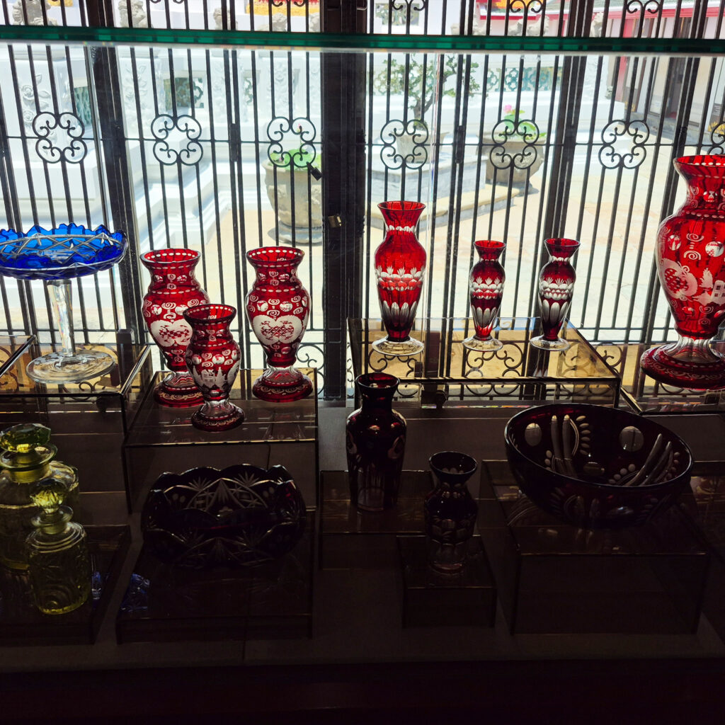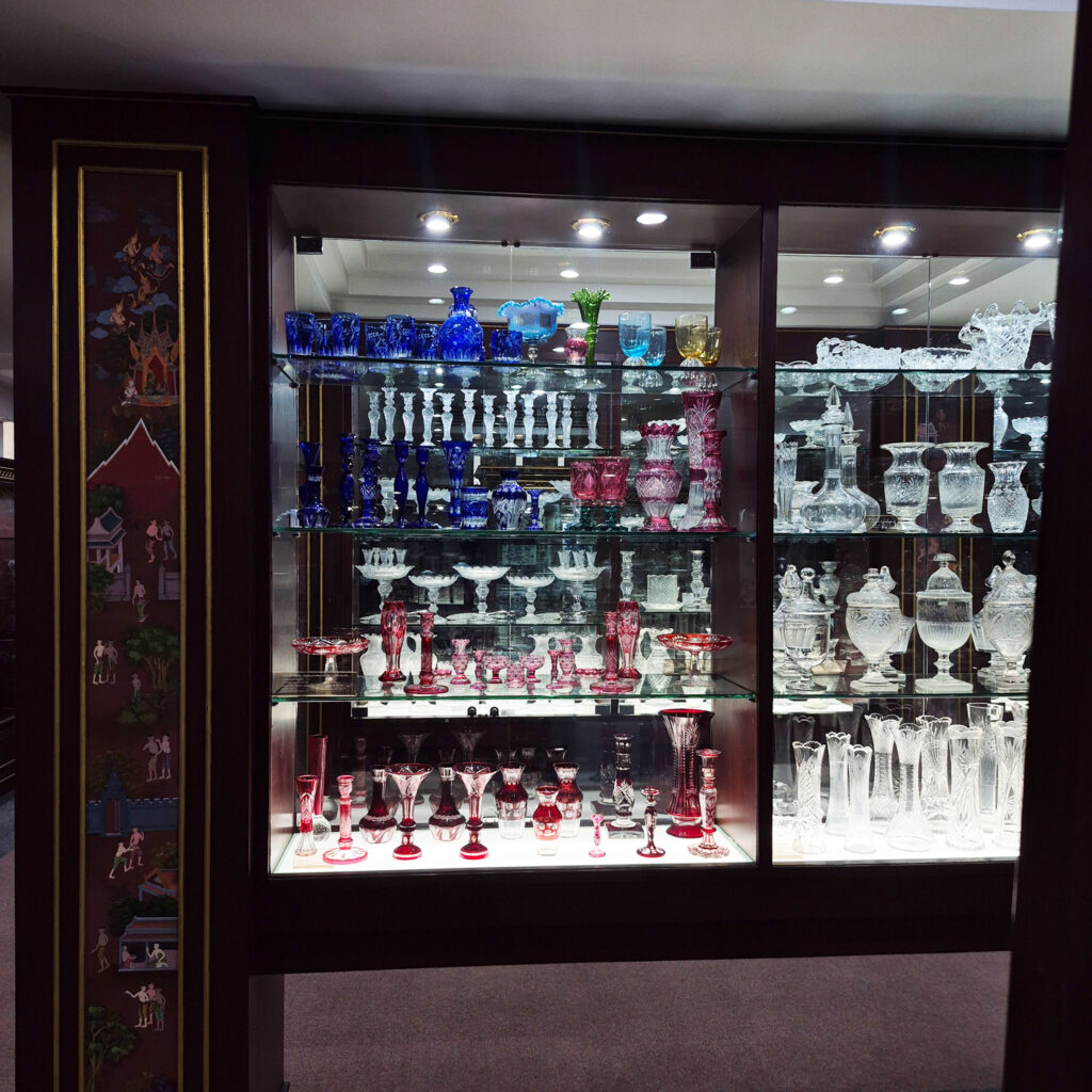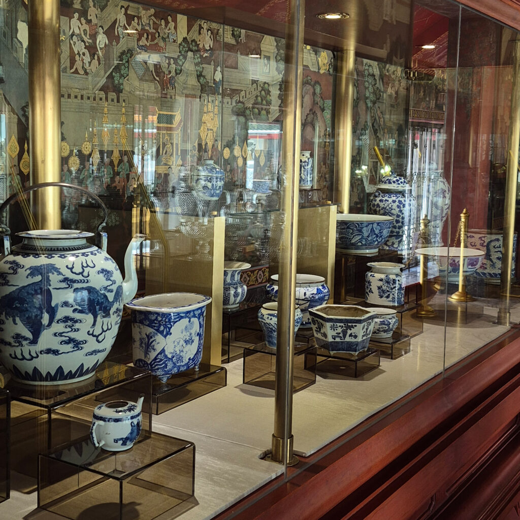 – ศาลารายทิศตะวันตกของพระมณฑป ส่วนนี้นับว่าเป็นส่วนที่จัดใหม่กันสด ๆ เลย เพราะก่อนหน้านี้อาคารบริเวณนี้ใช้เป็นส่วนของคลังเก็บของเพียงอย่างเดียว ไม่ได้อนุญาตให้เข้าชม ซึ่งตอนนี้ก็จัดแสดงพวกเครื่องถ้วยและเครื่องแก้วต่าง ๆ โดยมีทั้งโต๊ะเครื่องบูชา ตลอดจนมีจิตรกรรมเรื่องรามเกียรติ์อยู่ภายในด้วย