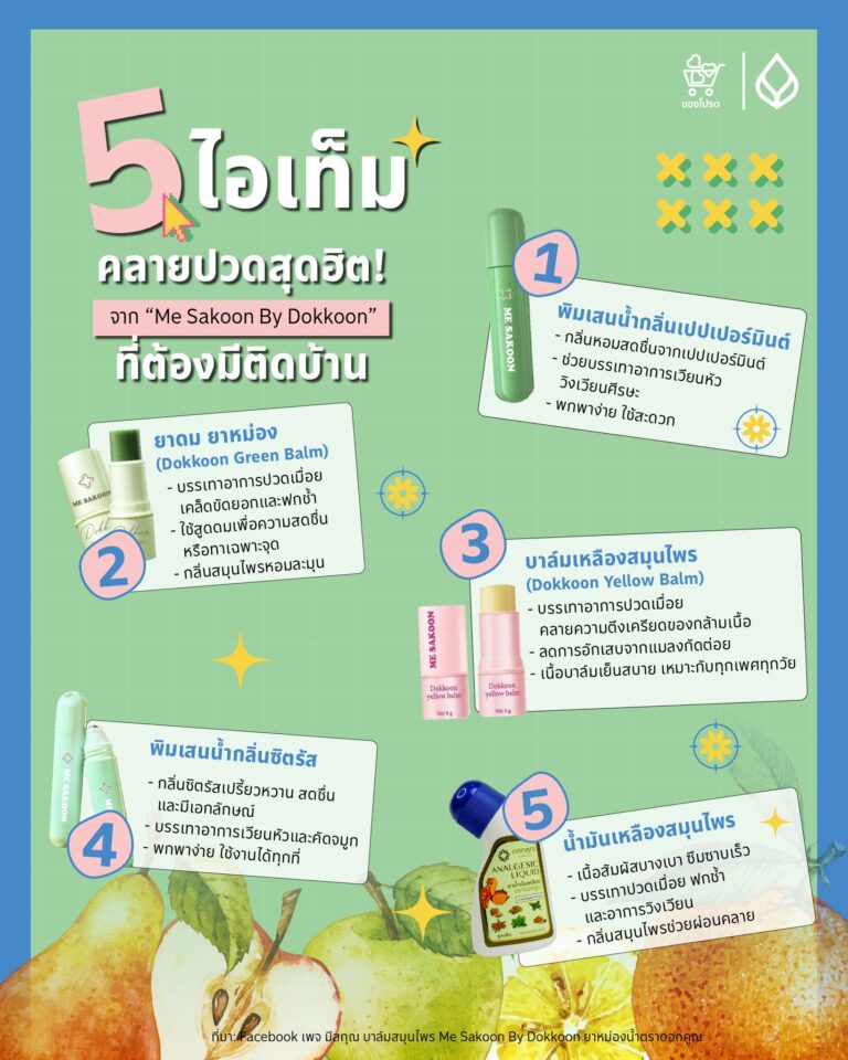 ของโปรด 5 ไอเท็ม คลายปวดสุดฮิต! จาก “Me Sakoon By Dokkoon” ที่ต้องมีติดบ้าน Chudnadis Diskulกุมภาพันธ์ 11, 2025มกราคม 21, 202601 mins มีสกุณ บาล์มสมุนไพร … Read More